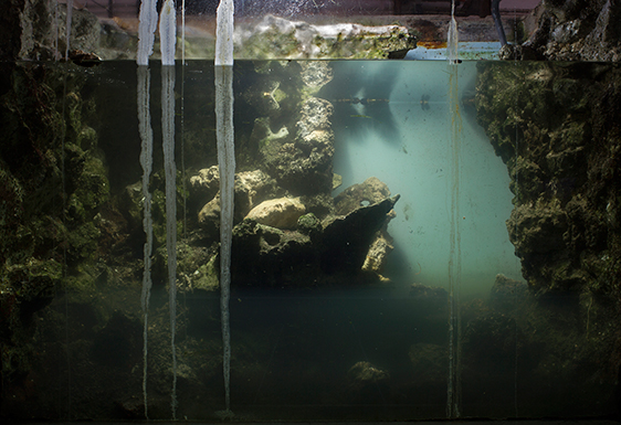 In the three-channel video installation Phantasma (2016), the camera transports the viewer through the dreamy, delirious and dilapidated rooms of an aquarium that opened in Copenhagen in 1939. Another work in the exhibition is a new series of photographs that puts the focus on things that we encounter daily but rarely truly observe. Car tyres, plastic chairs and other items are re-contextualized to form peculiar compositions.