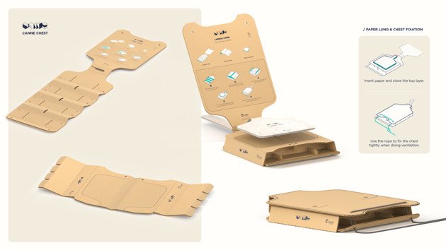 A corrugated cardboard Basic Life Support (BLS) learning kit that allows laypeople to practice CPR, such as cardiac arrest identification, chest compression and ventilation by themselves. The BLS self-directed application on the smartphone can significantly enhance the learning experience by simulating cardiac arrest scenarios and emergency medical services (EMS), providing real-time feedback of compression and ventilation, as well as encouraging lay people to join a final examination and granting an online BLS certificate.