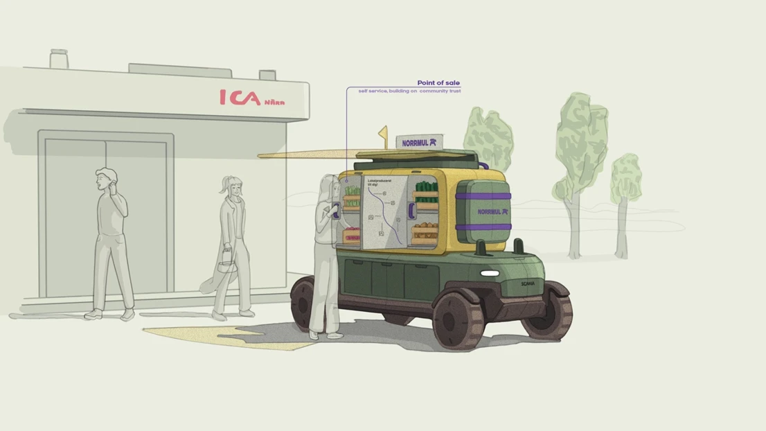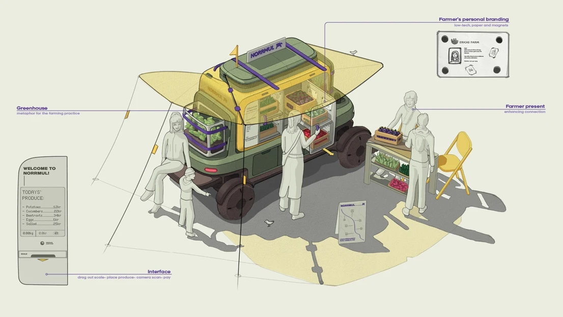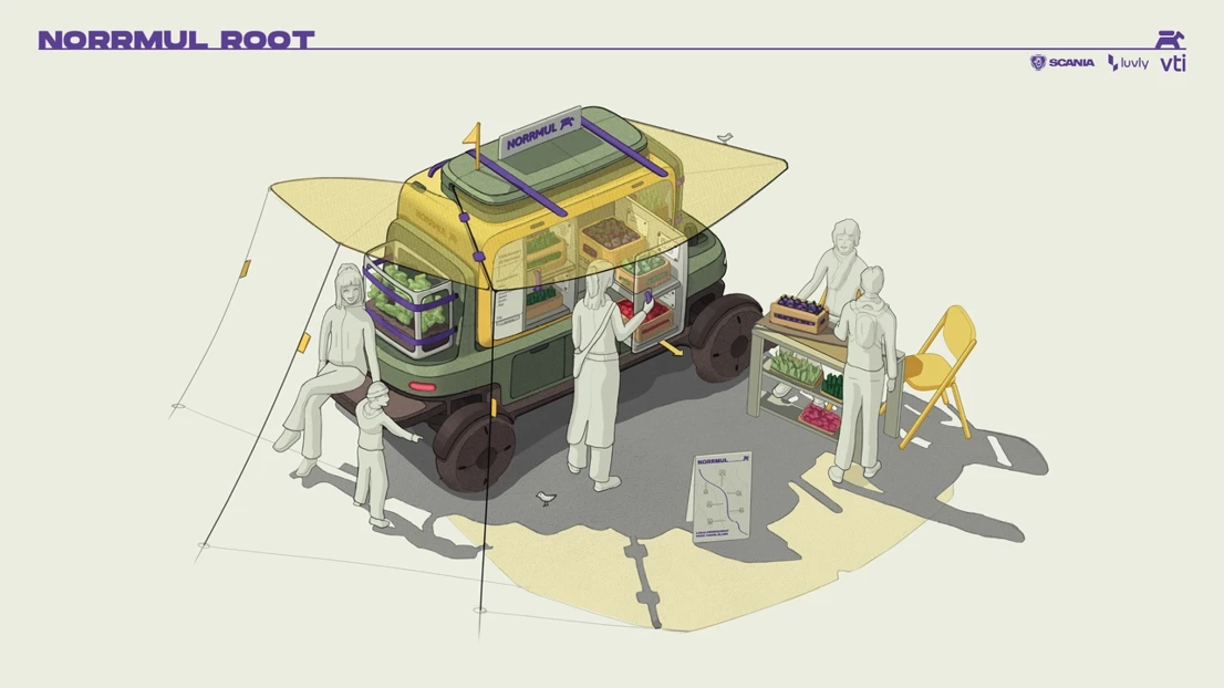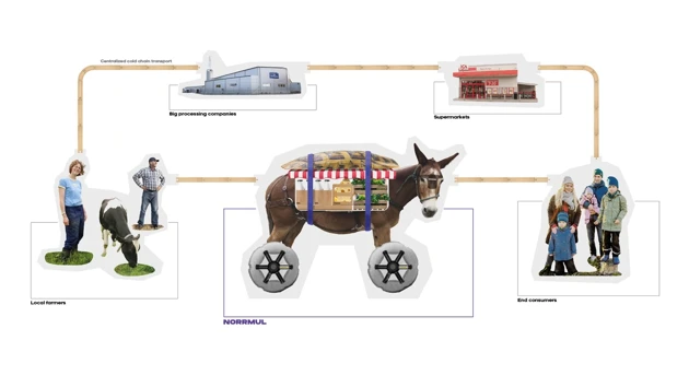 The region of Vindelälven is host to a rich history of farming and cultivation, but has seen a reduction in small producers in the era of mechanisation and consolidation. NorrMul looks to make it easier for small producers to connect with end consumers and small businesses by scaling down cold chain refrigeration and acting as a mobile point of sale.