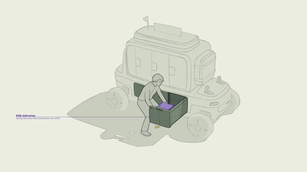 B2B delivery boxes ergonomically placed for picking up larger items