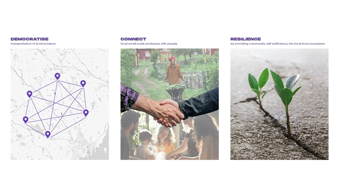 Say hello to Tote, my interpretation of Team NorrMul’s concept package. Tote embodies the spirit of working farm animals that span across cultures, with an expression that symbolises a hard working creature carrying a heavy pack. It’s here to Democratise food transportation, Re-Connect farmers and consumers, and provide local Resilience.