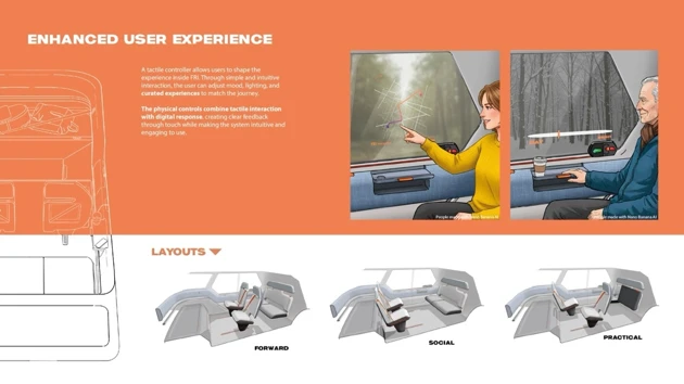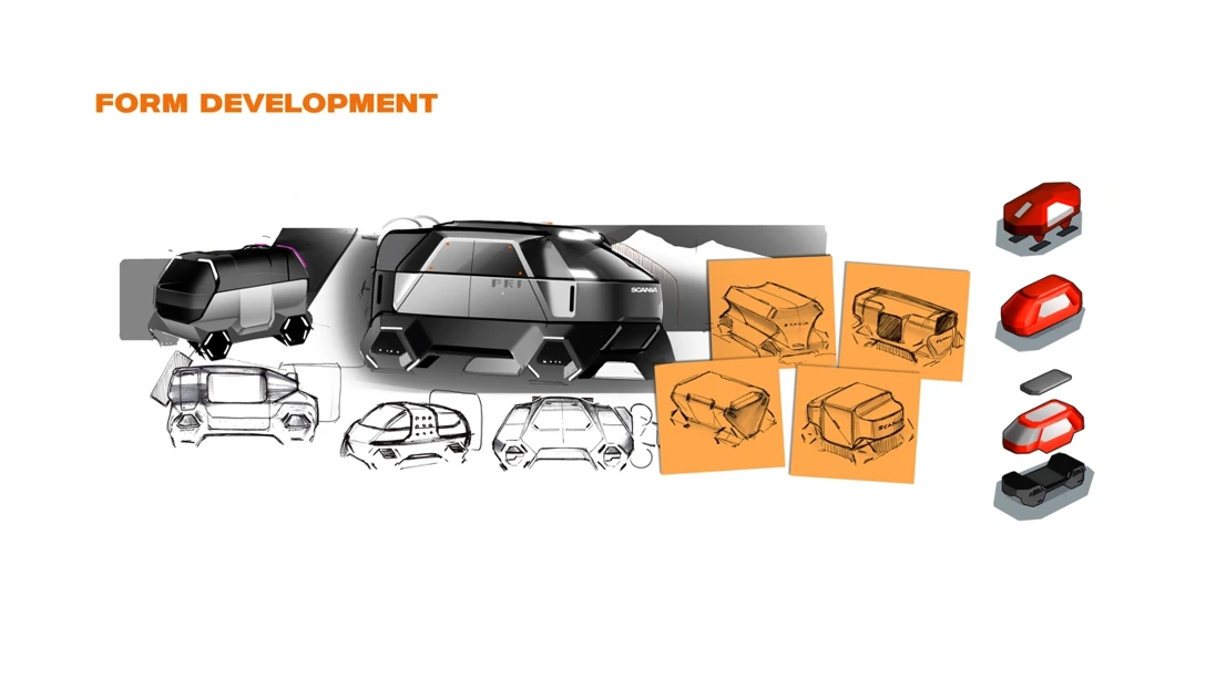 FRI is a compact, fully autonomous, on-demand vehicle designed for short-distance transport of people. It features a flexible interior layout that adapts to a wide range of user needs, while the exterior is shaped to project an approachable yet capable image, helping to build trust in autonomous technology. From everyday travel to spontaneous trips in sparsely populated areas. Built on a robust platform suited for harsh Nordic conditions, the project addresses the lack of accessible transport options in rural regions. These areas are often overlooked in conventional vehicle design. By prioritising sustainability, safety, and user-centered design, FRI aims to give people in rural Norrland the same freedom of movement as those in cities, through an accessible on-demand transport system.