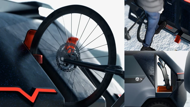 To keep things easy, every handle or feature you need to use is marked in bright orange, so you never have to guess. On the back, you’ll find a simple rack for two bikes and a storage space tall enough for things like skis.