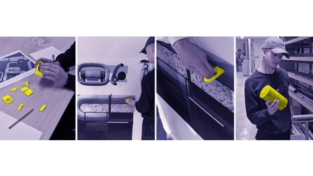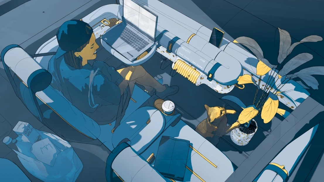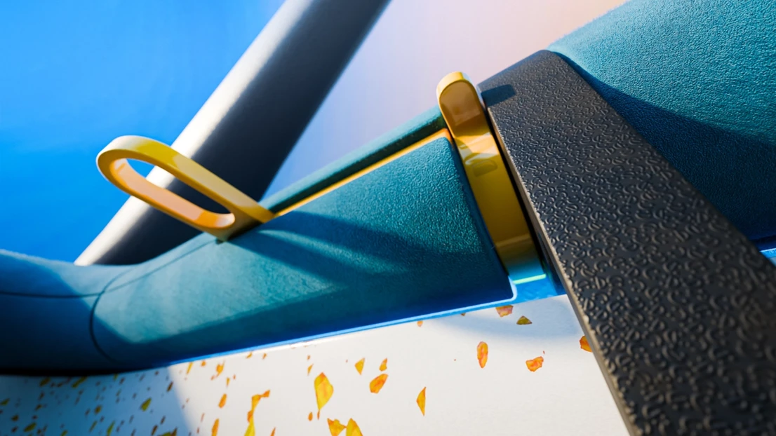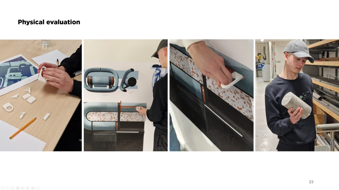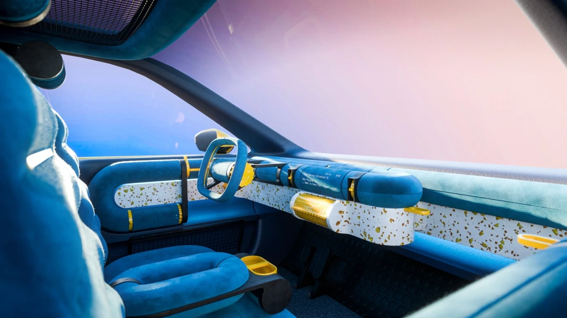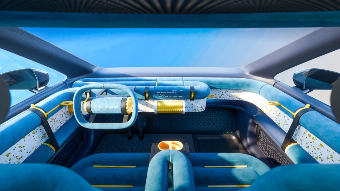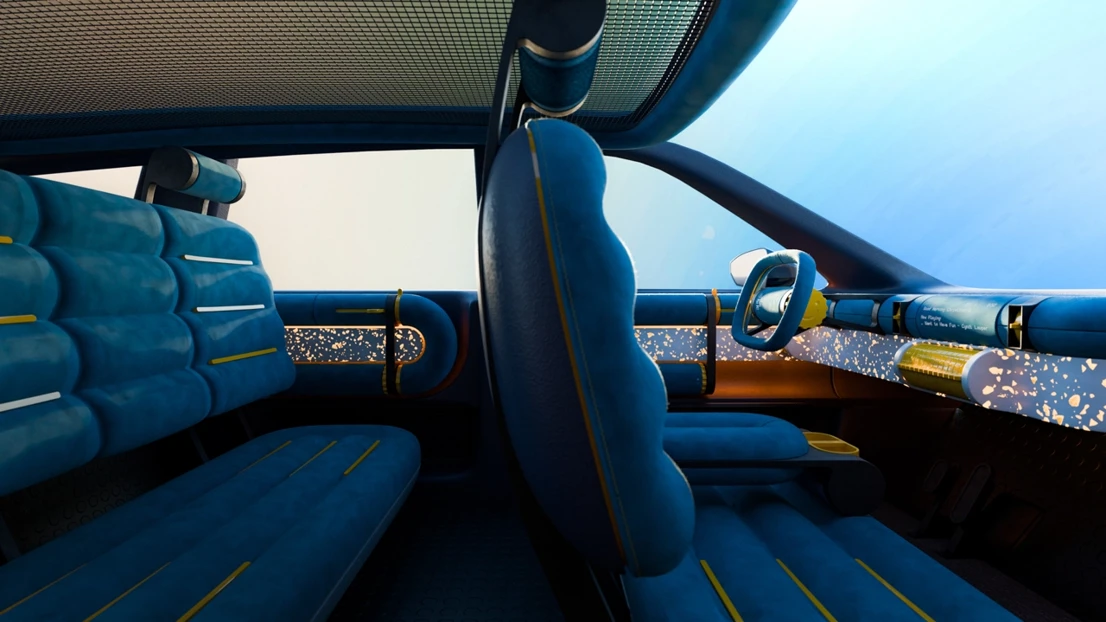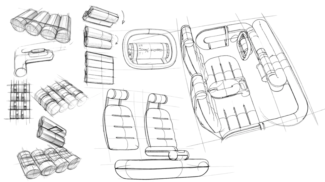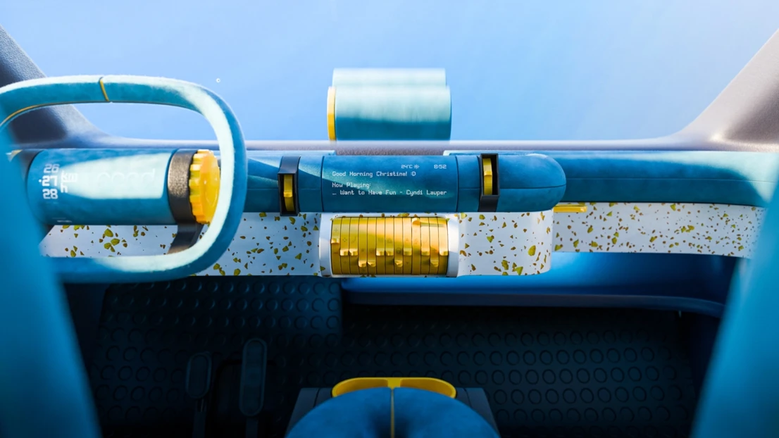 This is Ford Fun, a car interior concept focusing on physical and playful interactions, allowing our users Christine and Stella to go back to the fundamentals while putting a smile on their faces. Our multi purpose cylinders create a continuous loop from the driver’s door panel to the passenger’s, for a logical but quirky expression. The interior is like a playground, or a fidget park if you will, with numerous inviting interactions and form elements to explore. To not lose track of Ford’s identity during the project, we have worked with two of their current values, capability and affordability, and one new value, smile, as guiding stars for our interior.