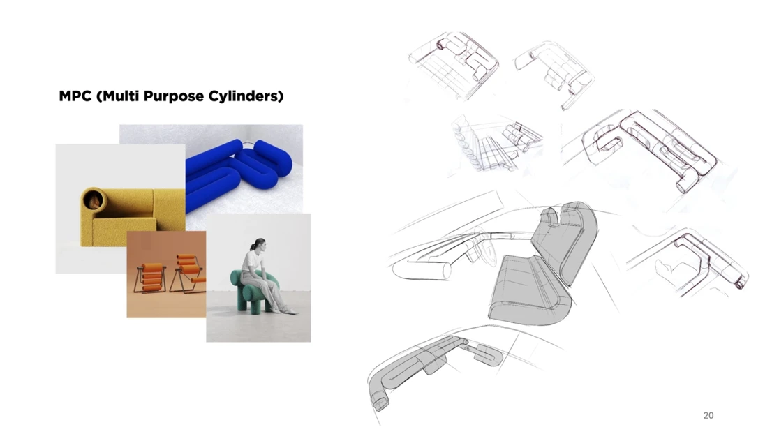The form originates from cylinders. We found it interesting since it is very simple and easy to understand, yet full of potential innovation.