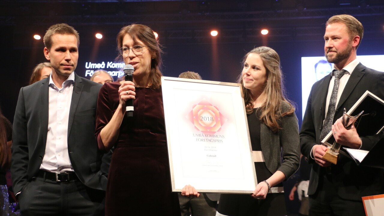 Codemill tar in 30 miljoner kronor, siktar på börsintroduktion. Bilden från när Codemill tog emot pris vid Umeågalan 2018.