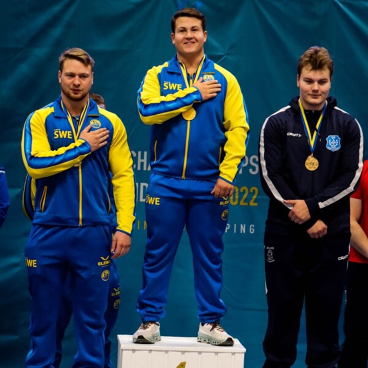 Elitidrottsstudent Emil Johansson högst upp på prispallen.