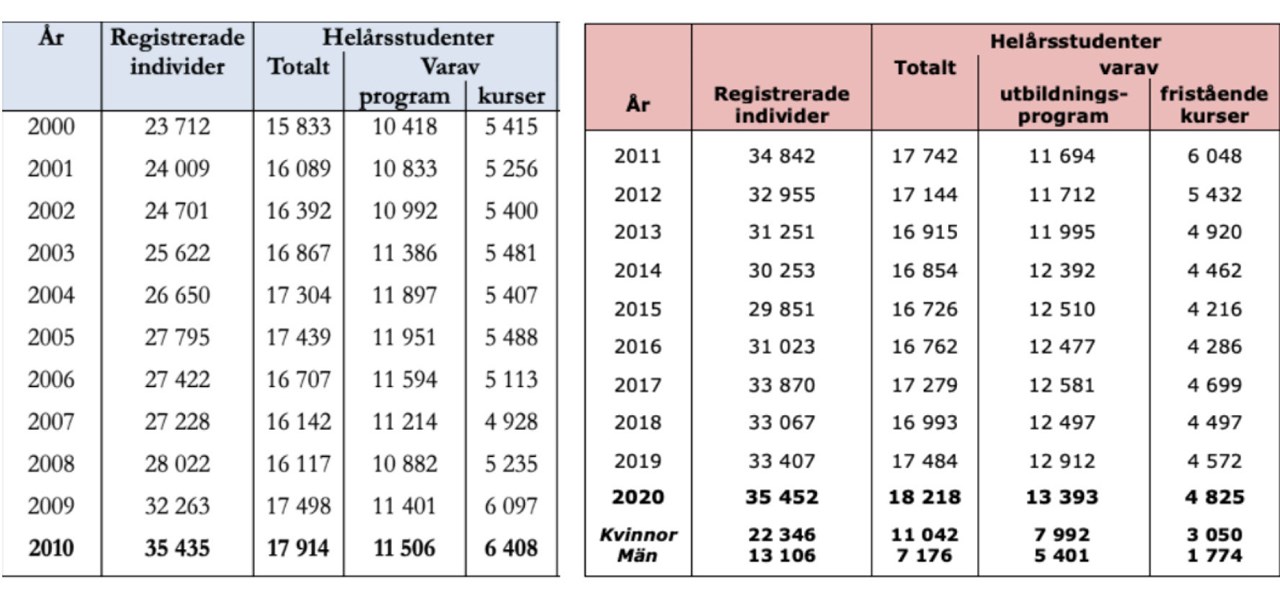 Totalt registrerade individer på grundnivå och avancerad nivå* år 2020: 35 452