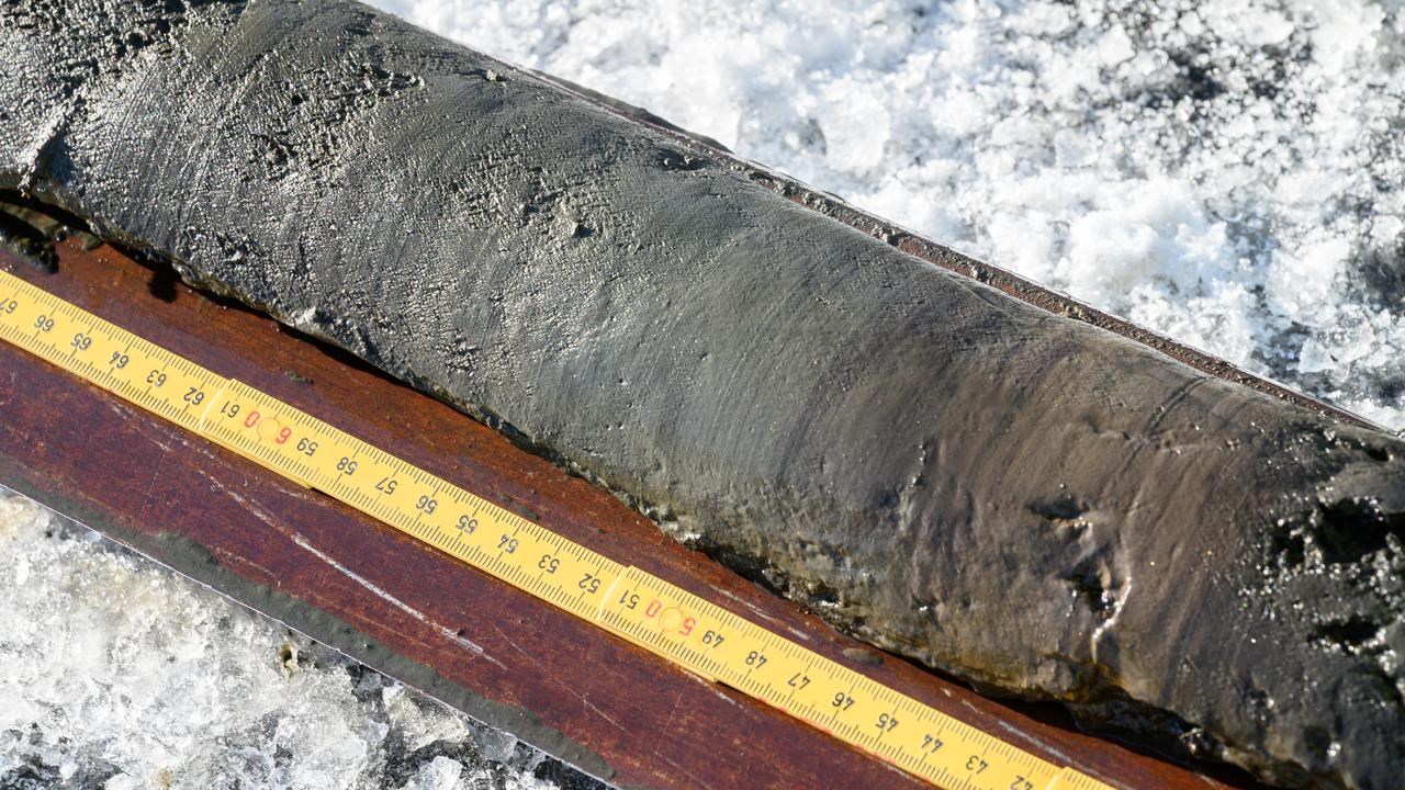 Provtagaren som forskarna använder är 18 meter lång. Med hjälp av den tar de upp ett cirka tre meter långt sedimentprov.
