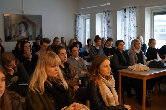 När Umeå Centrum för genusstudier, UCGS, informerade om sin utbildning kom det många gymnasieelever för att lyssna. UCGS studievägledare, Linda Sandberg, var mycket positiv till det stora intresset.