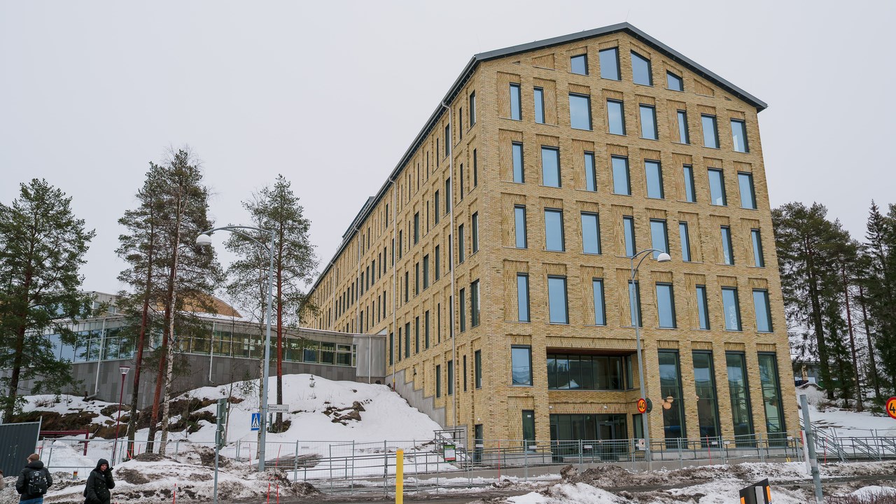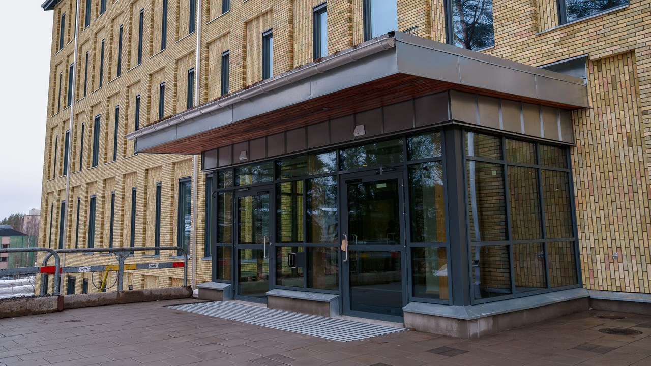 Huset nås både via Campuskorridoren och från entréer på utsidan.