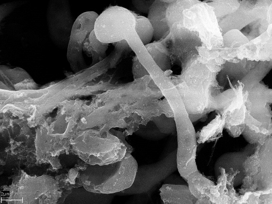 Bild: Candid albicans hyphae-celler i en neutrofil extracellulär fälla. (foto: Constatin Urban)