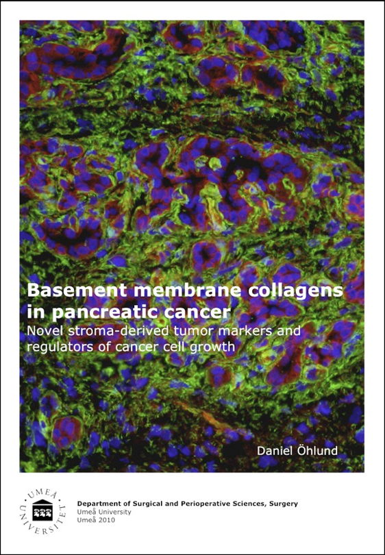 Fredag 3 december försvarar Daniel Öhlund sin avhandling med titeln Basement membrane collagens in pancreatic cancer – novel stroma-derived tumor markers and regulators of cancer cell growth (Svensk titel: Basalmembranskollagener vid pankreascancer – utgör nya stromala tumörmarkörer och reglerar cancercellstillväxt). Disputationen äger rum kl. 13.00 i Sal B, byggnad 1D, 9 trappor (Tandläkarhögskolan), Norrlands universitetssjukhus. Avhandlingen försvaras på engelska. Fakultetsopponent är professor Matthias Löhr, Karolinska institutet.