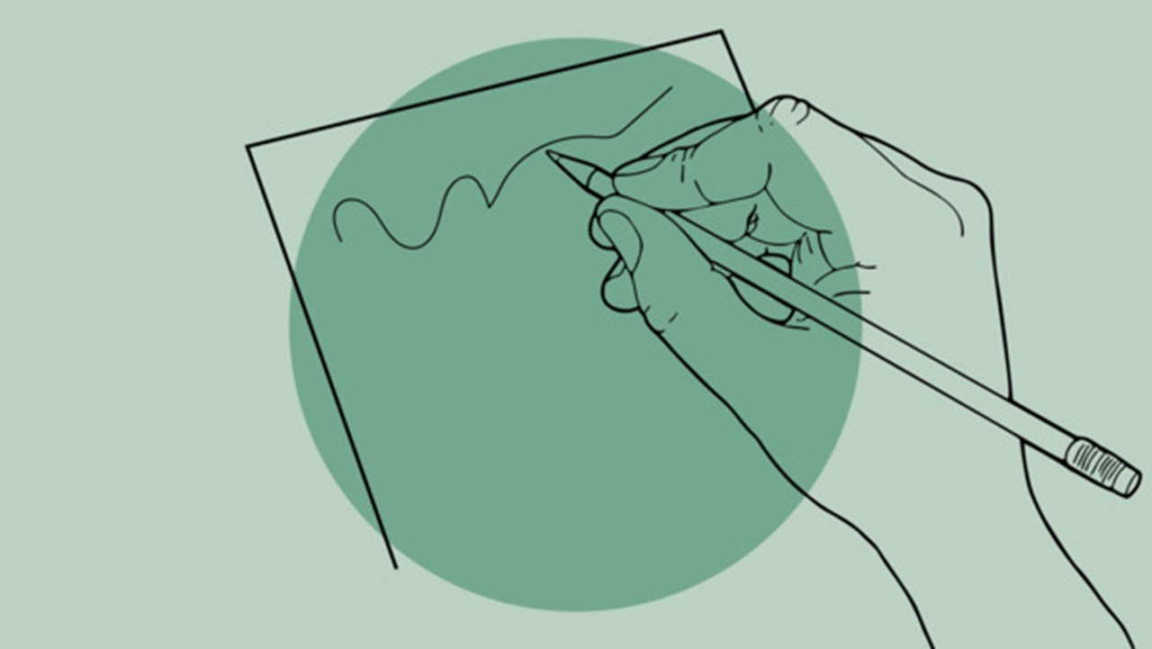 Hand med penna som skriver på ett papper.