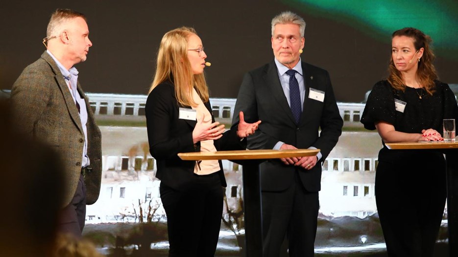 Forskarna höll korta föredrag och sedan följde ett panelsamtal där alla fyra, plus rektor Tora Holmberg, deltog.