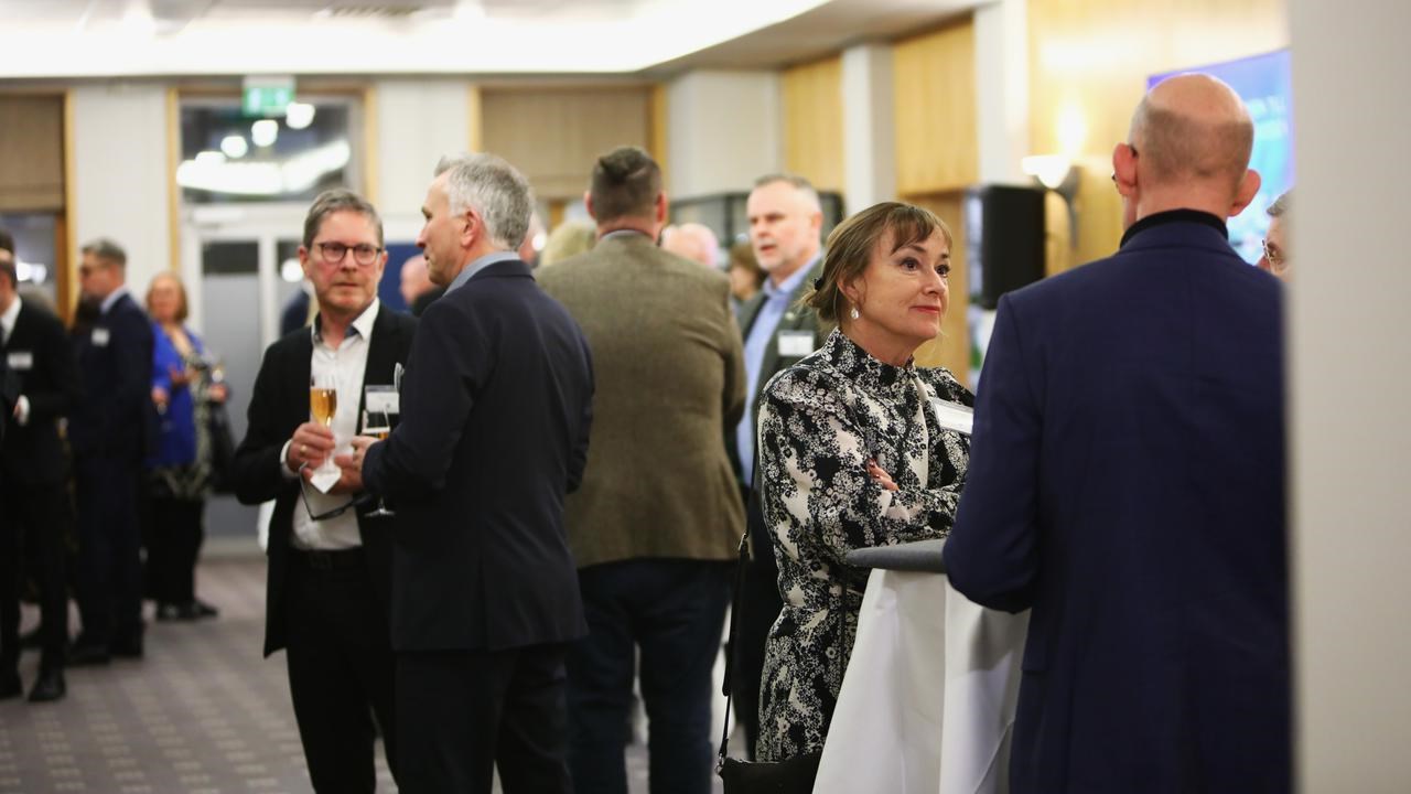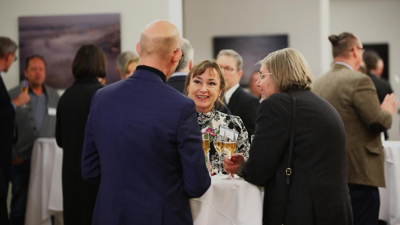 Rektor Tora Holmberg talar med folk under ett av Kunskapsnodens mingel.